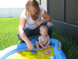 Aunt Tori trying to persuade Collin to enjoy his pool.